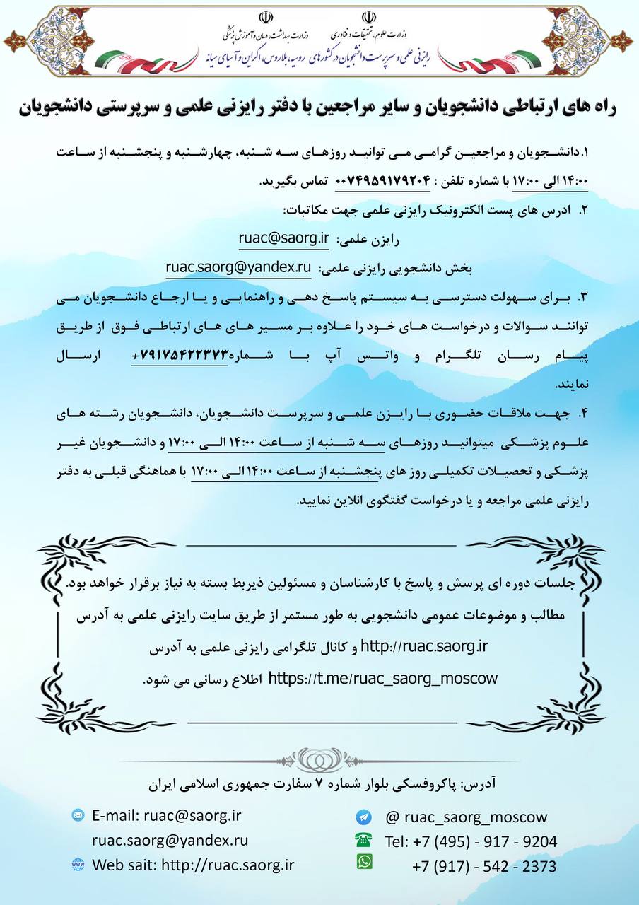 راههای ارتباطی با رایزن علمی و سرپرست دانشجویان