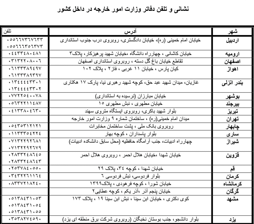 10. لوکیشن دفتر وزارت امور خارجه در مشهد: