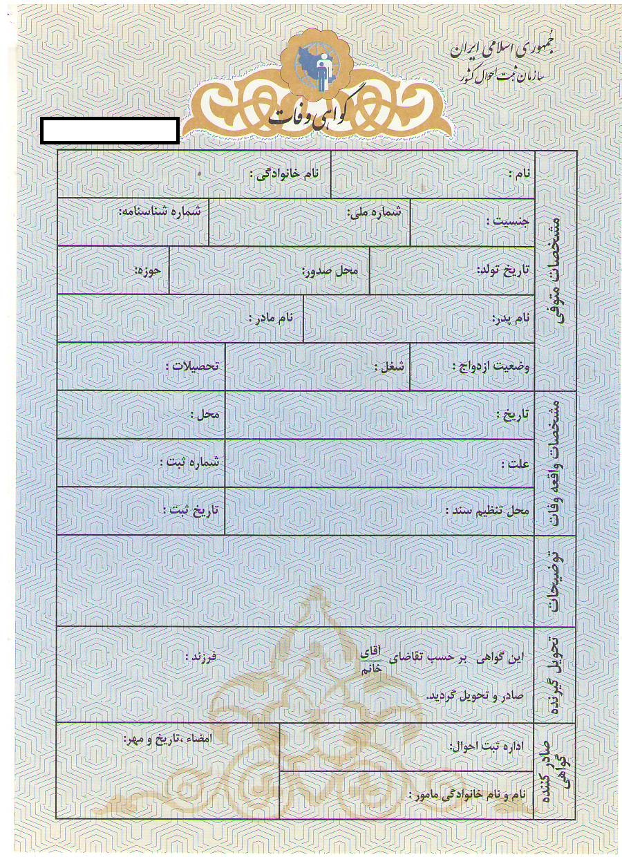 1.گواهی فوت(Свидетельствоосмерти) که توسط اداره خدمات دولتی ثبت