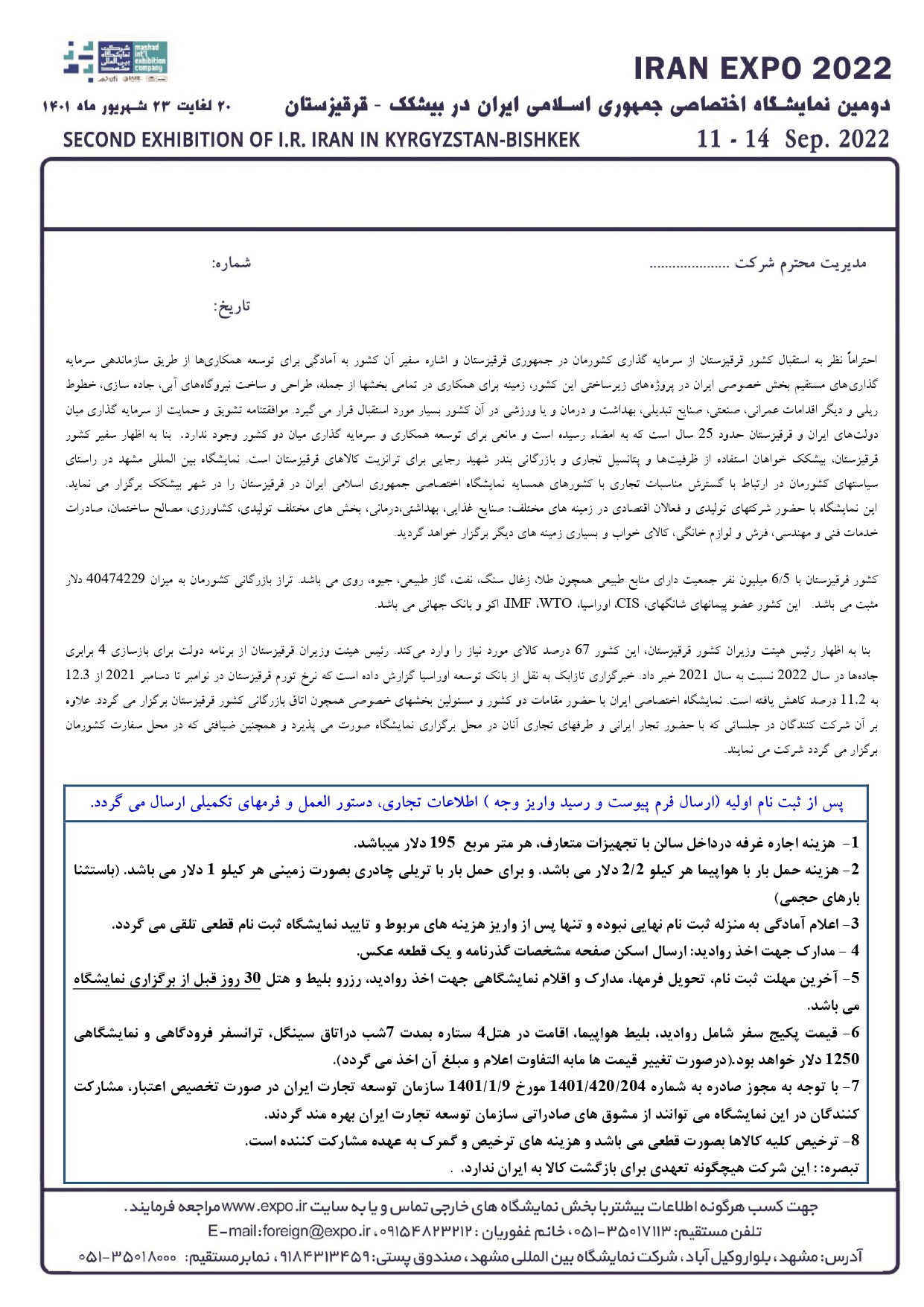 اطلاعات اولیه در خصوص نمایشگاه