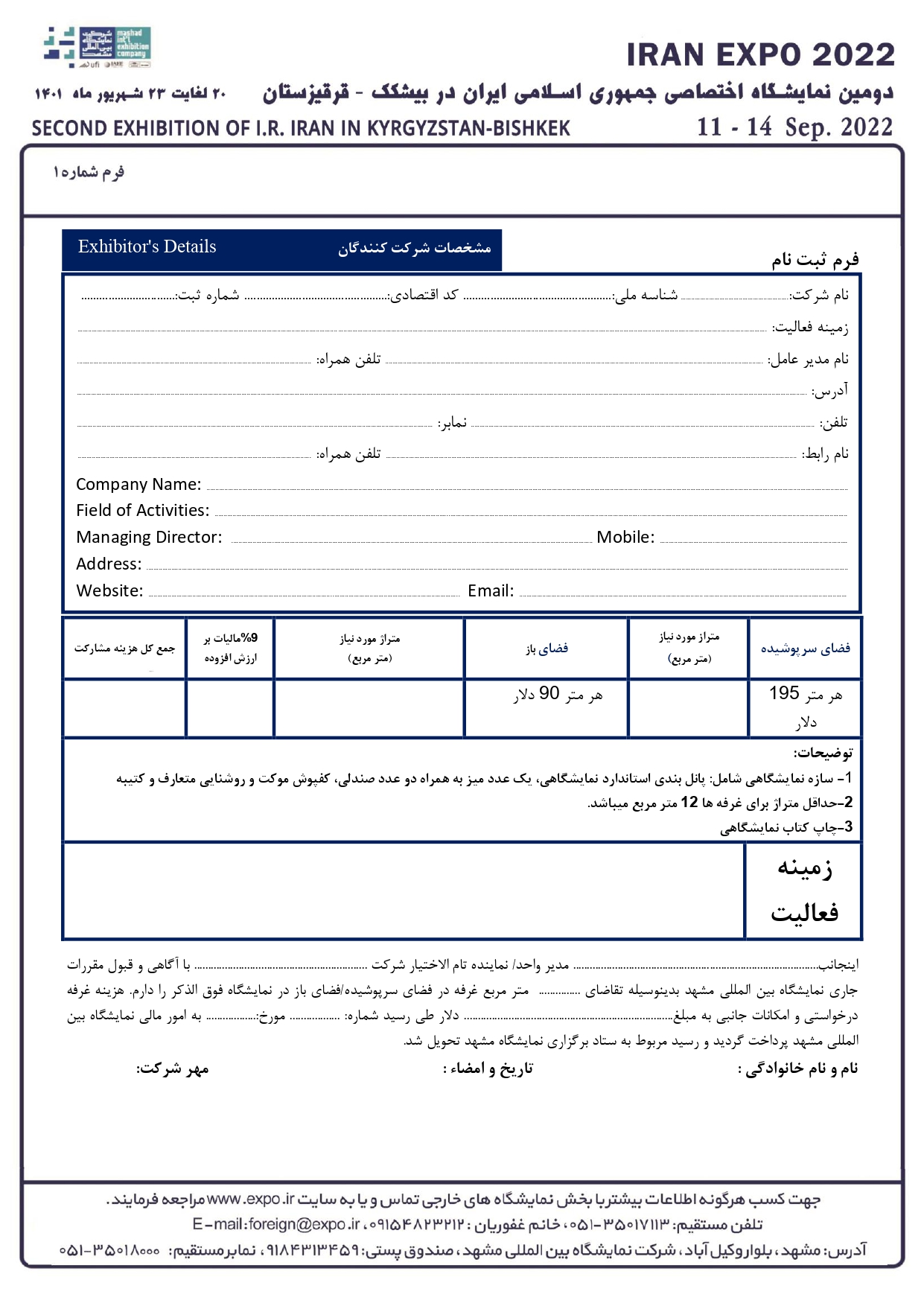 فرم ثبت نام در نمایشگاه